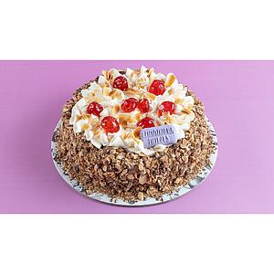 Βάση μαρέγκας, κρέμα αρμενοβίλ, καβουρδισμένα αμύγδαλα, σαντιγύ, κερασάκια.